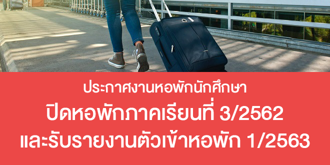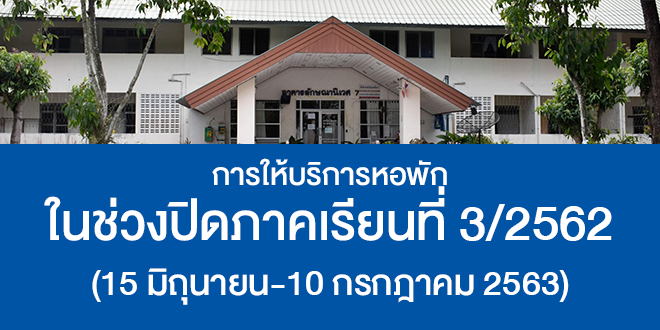 การบริการหอพักช่วงปิดภาคเรียนที่ 3/2562 (15 มิถุนายน-10