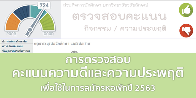 การตรวจสอบคะแนนความดีและความประพฤติที่ใช้สมัครอยู่หอพัก 2563 Read More »