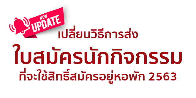แจ้งเปลี่ยนวิธีการส่งใบสมัครนักกิจกรรม ที่จะใช้สิทธิ์สมัครอยู่หอพัก 2563 Read More »