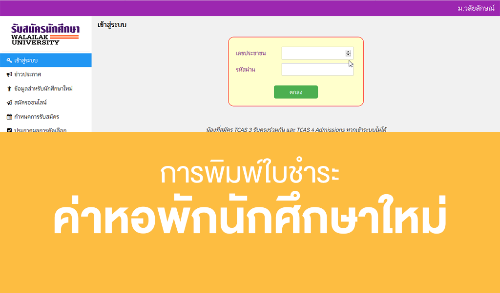 การพิมพ์ใบชำระค่าหอพักนักศึกษาที่สมัครหอพักออนไลน์แล้วเ