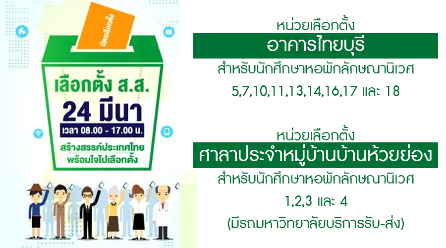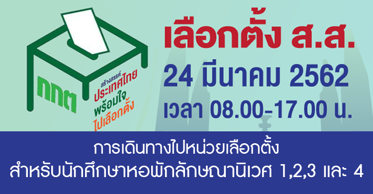 งานหอพักนักศึกษา ขอแจ้งข้อมูลหน่วยเลือกตั้งสำหรับนักศึก