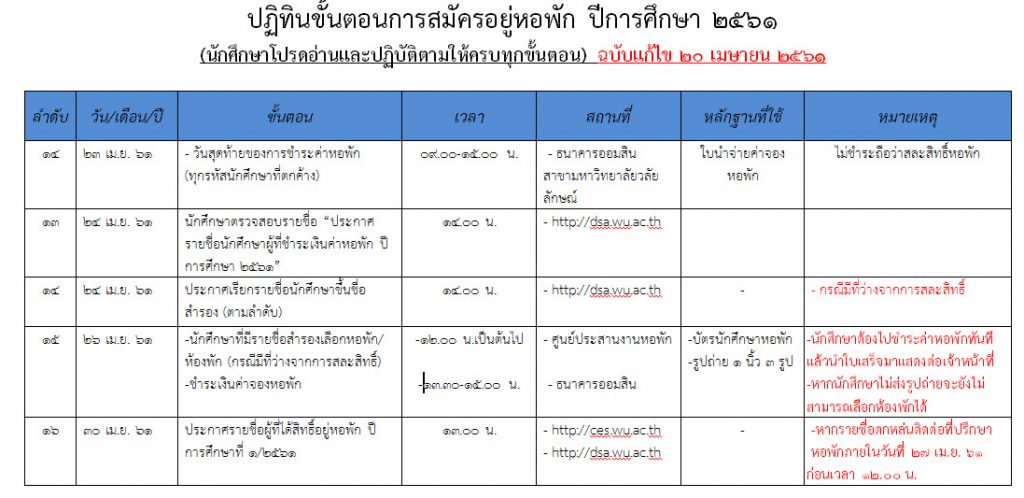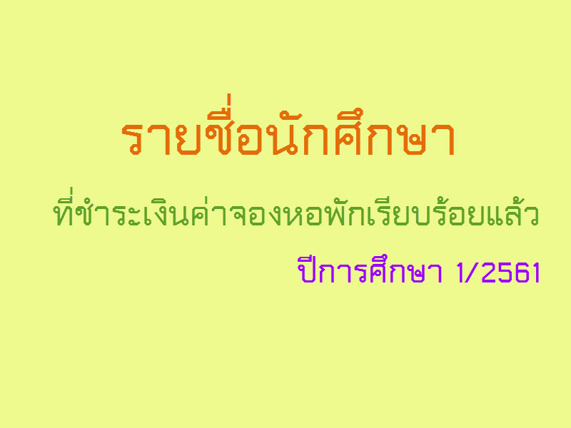 งานหอพักประกาศรายชื่อนักศึกษาที่ชำระเงินค่าจองหอพักเรีย