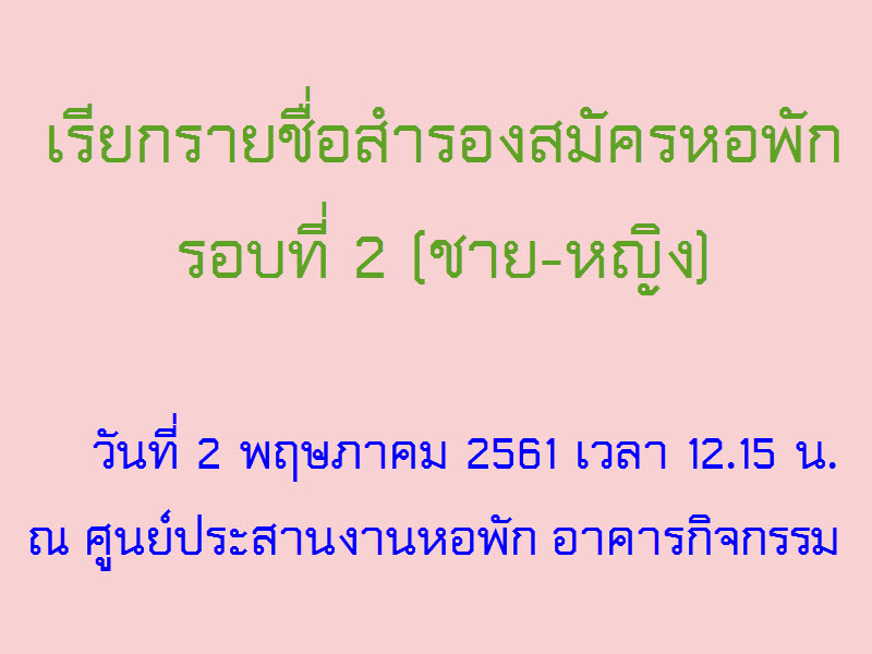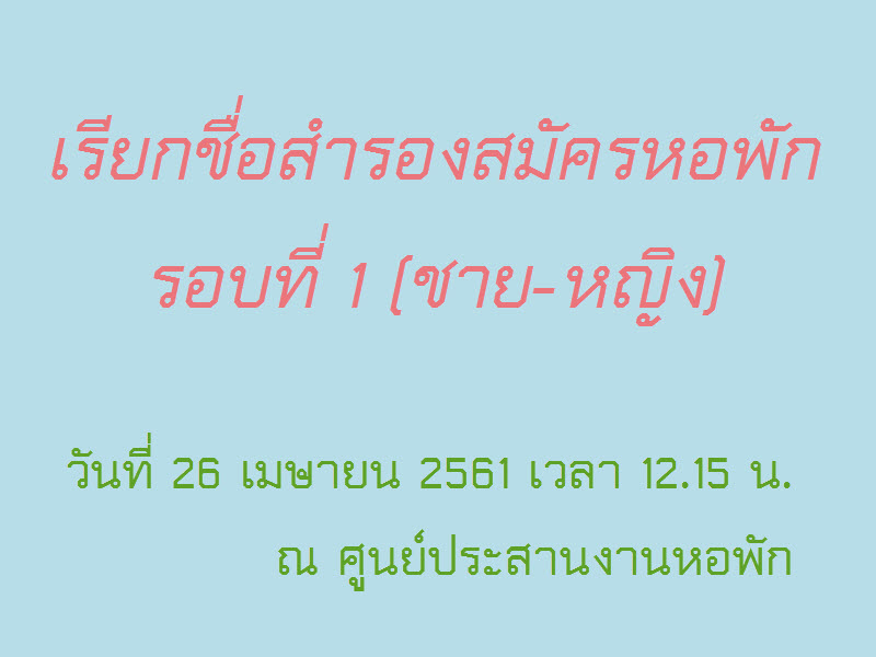 งานหอพักประกาศเรียกนักศึกษาขึ้นชื่อสำรองสมัครหอพักรอบที