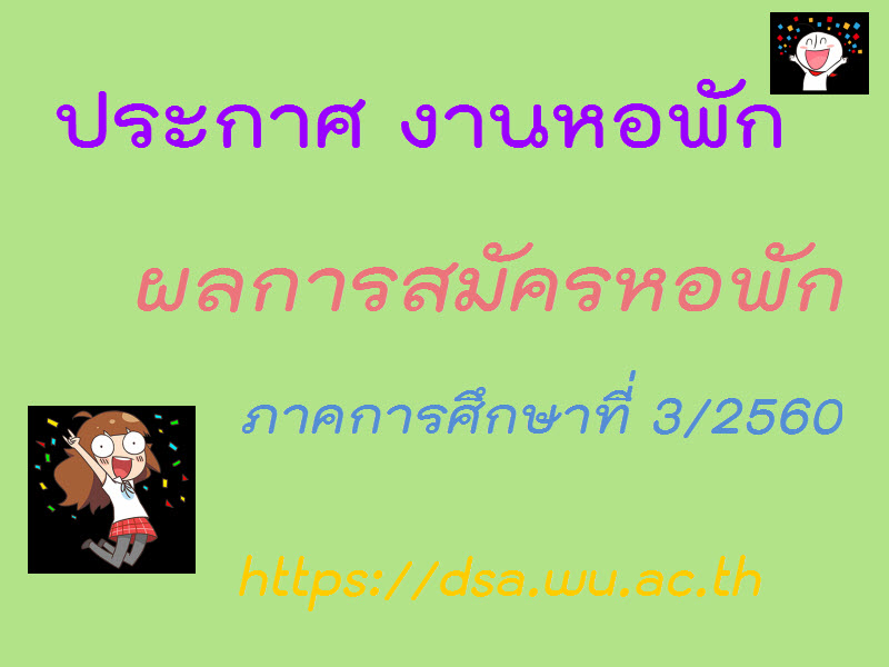 ประกาศงานหอพัก : เรื่องรายชื่อนักศึกษาขอผ่อนผันค่าธรรมเนียมหอพัก ภาคการศึกษาที่ 3/2560