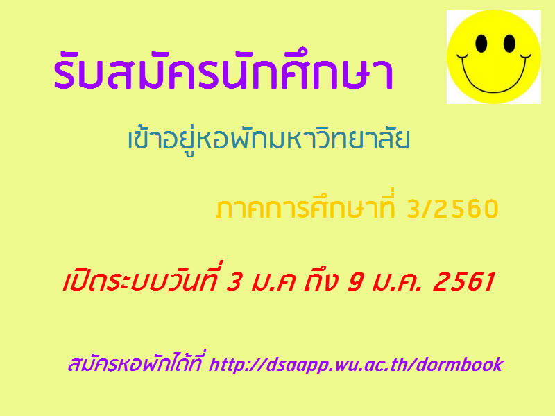 งานหอพักเปิดรับสมัครนักศึกษาอยู่หอพัก สำหรับนักศึกษาที่