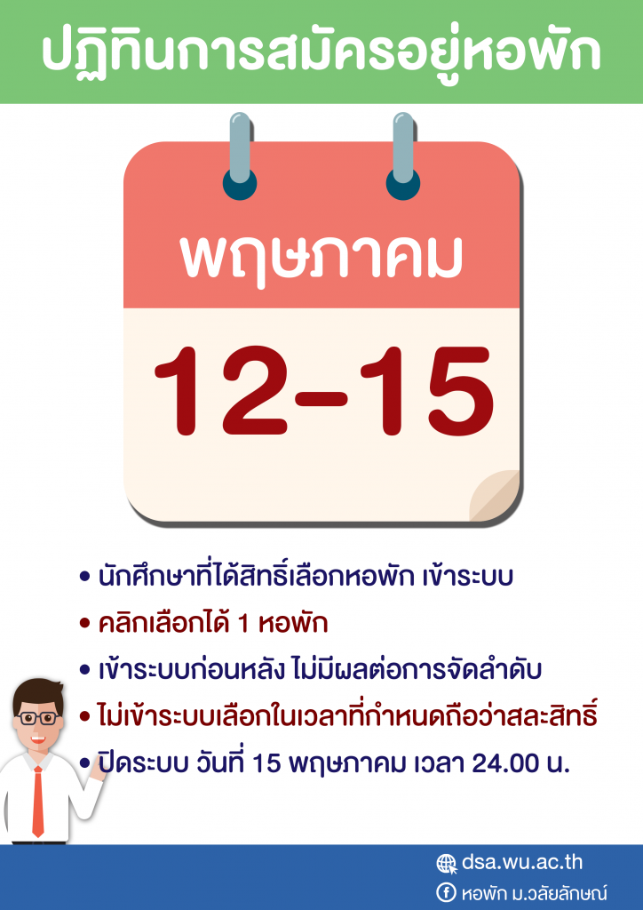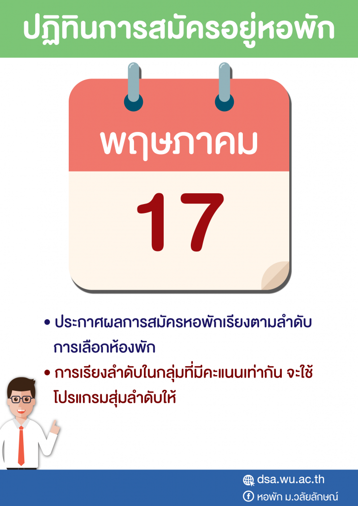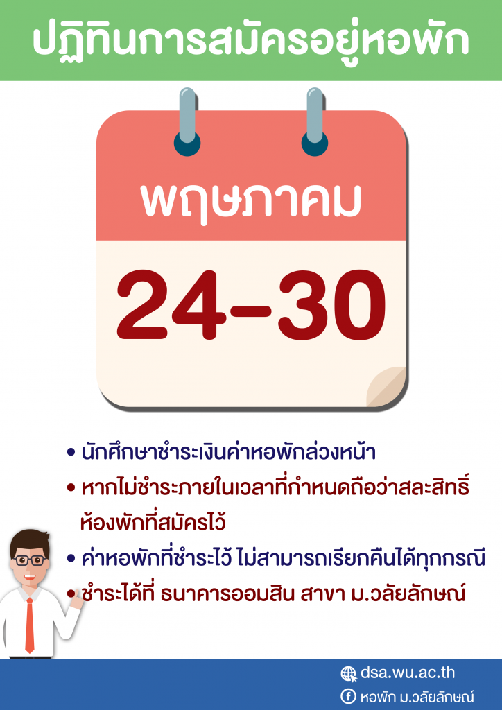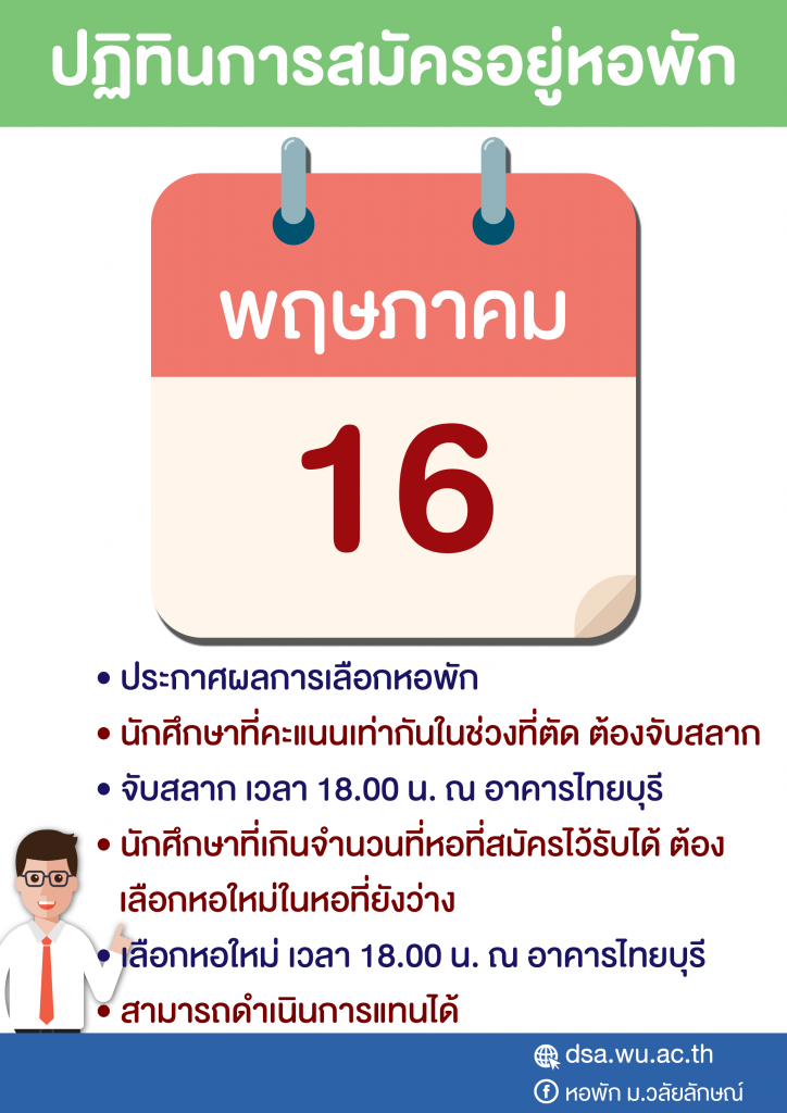 งานหอพักประกาศเรียกนักศึกษาขึ้นชื่อสำรองสมัครหอพักรอบที