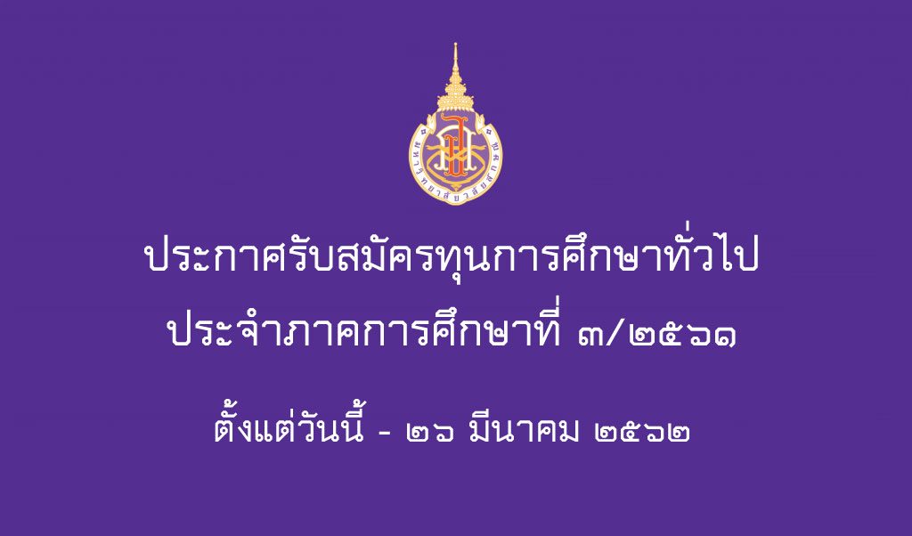 รับสมัครทุนการศึกษาทั่วไป ประจำภาคเรียนที่ 3/2561