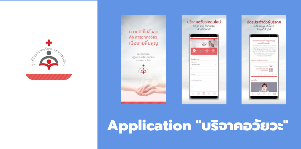 คณะกรรมการส่งเสริมกิจการศูนย์รับบริจาคอวัยวะสภากาชาดไทย จัดทำ Application “บริจาคอวัยวะ” เพื่ออำนวยความสะดวกแก่ผู้ที่ประสงค์จะบริจาคอวัยวะให้กับศูนย์เพื่อนำไปปลูกถ่ายให้กับผู้ป่วยระยะสุดท้ายที่ต้องการความช่วยเหลือ ทั้งจะช่วยแก้ปัญหาขาดแคลนอวัยวะและสามารถบริจาคอวัยวะได้สะดวกด้วยระบบออนไลน์ด้วย