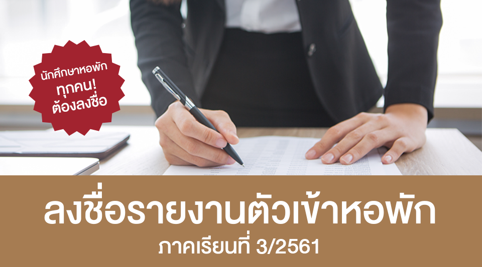 1.ลงชื่อรายงานตัวอยู่หอพักภาคเรียนที่ 3/2561 ในจุดลงชื่อของหอพักที่นักศึกษาพักอาศัย ตั้งแต่วันนี้-3 กุมภาพันธ์ 2562