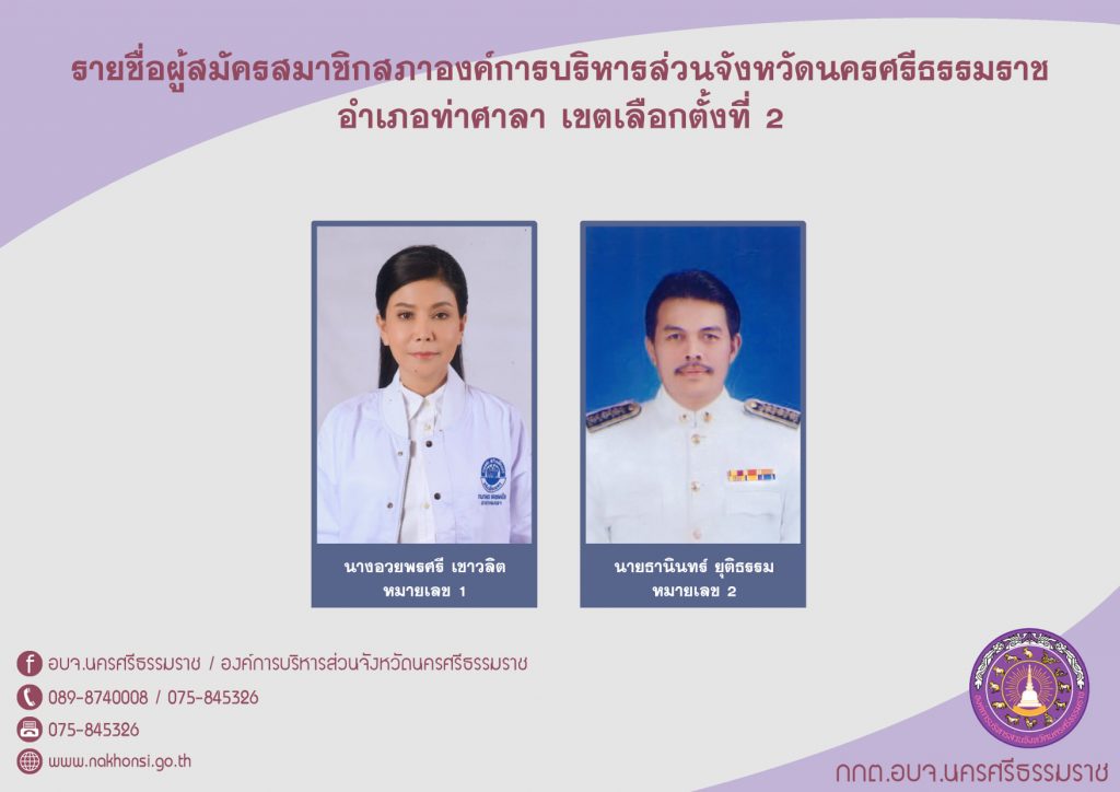 ผู้สมัครรับเลือกตั้งเป็นสมาชิกองค์การบริหารส่วนจังหวัดนครศรีธรรมราช อำเภอท่าศาลา เขต 2