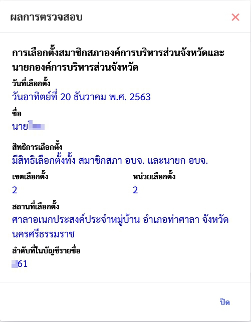 โดยเว็บไซต์จะแสดงข้อมูล สิทธิเลือกตั้ง เขตเลือกตั้ง หน่วยเลือกตั้ง และสถานที่เลือกตั้ง รวมถึงลำดับในบัญชีรายชื่อ (ให้จำลำดับให้ดี)