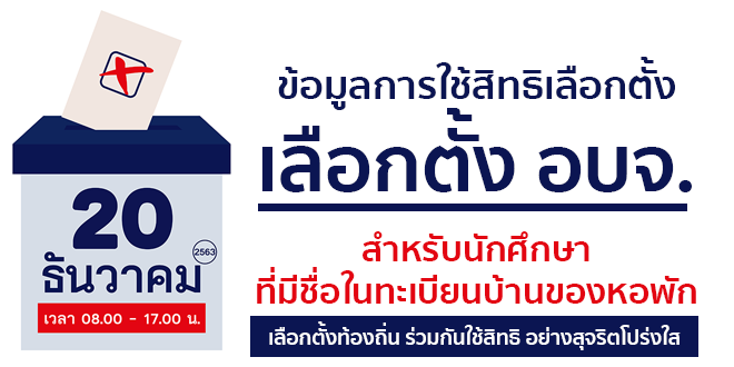 นักศึกษาที่มีชื่ออยู่ในทะเบียนบ้านของหอพัก จะมีสิทธิเลือกตั้งใน เขตเลือกตั้งที่ 2 อำเภอท่าศาลา