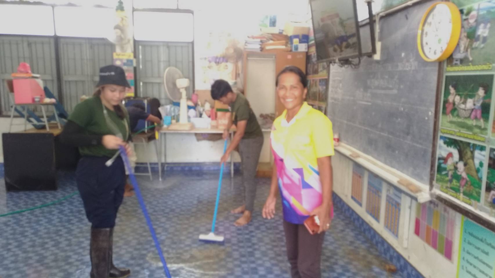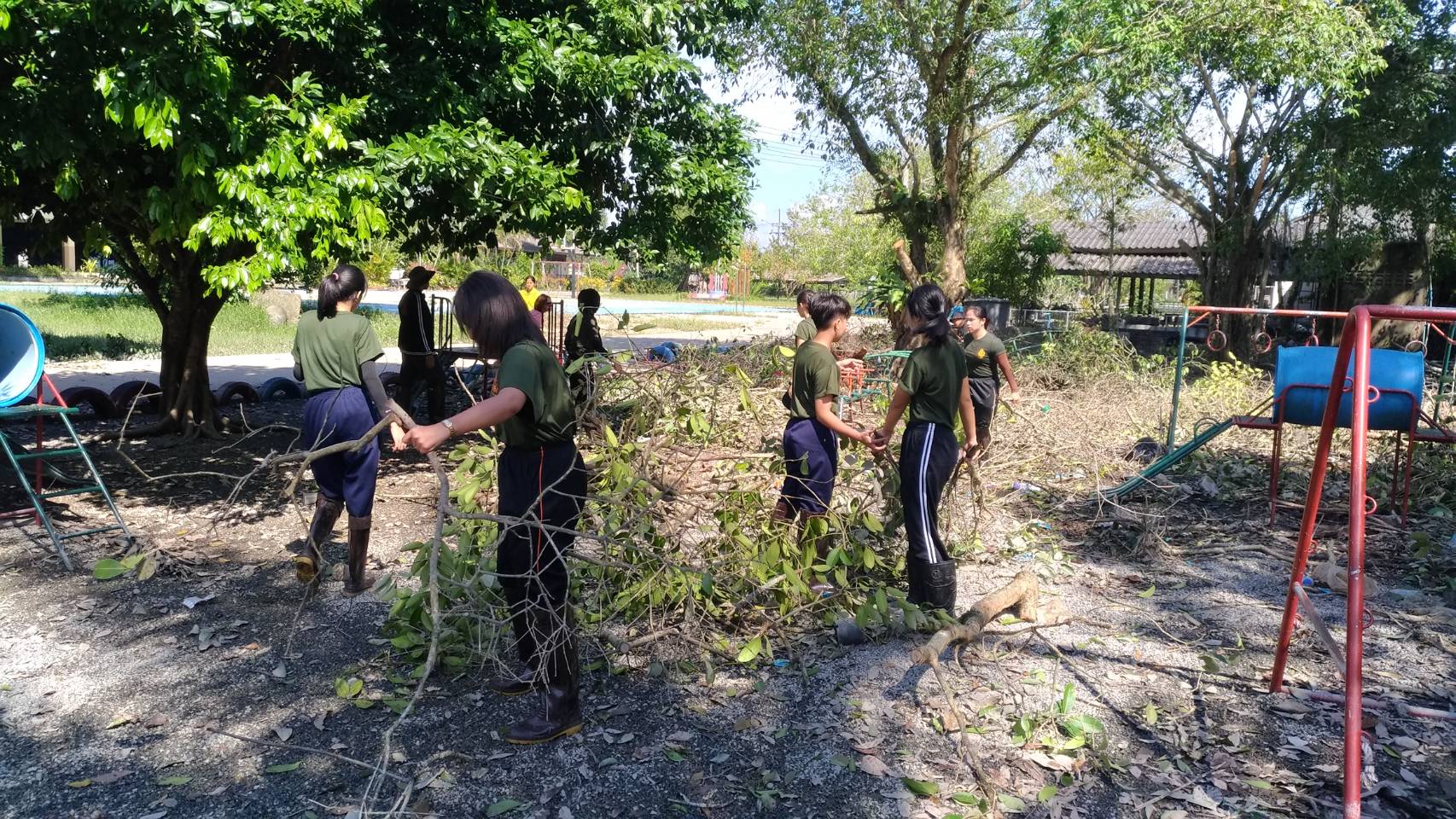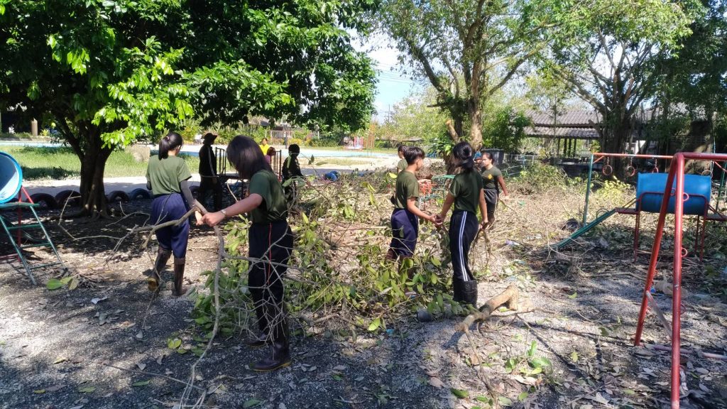 นักศึกษาวิชาทหารศูนย์ฝึกนักศึกษาวิชาทหารมหาวิทยาลัยวลัยลักษณ์ มณทลทหารบกที่ 41 ร่วมกับคณะครู ผู้ปกครอง ผู้นำชุมชน ร่วมกิจกรรมทำความสะอาดห้องเรียนเคลื่อนย้ายอุปกรณ์การเรียนที่ได้รับความเสียหายจากน้ำท่วมและเก็บกิ่งไม้หักโคนจากแรงลมทับเครื่องเล่นสนาม โรงเรียนวัดโคกเหล็ก อำเภอท่าศาลา จังหวัดนครศรีธรรมราช