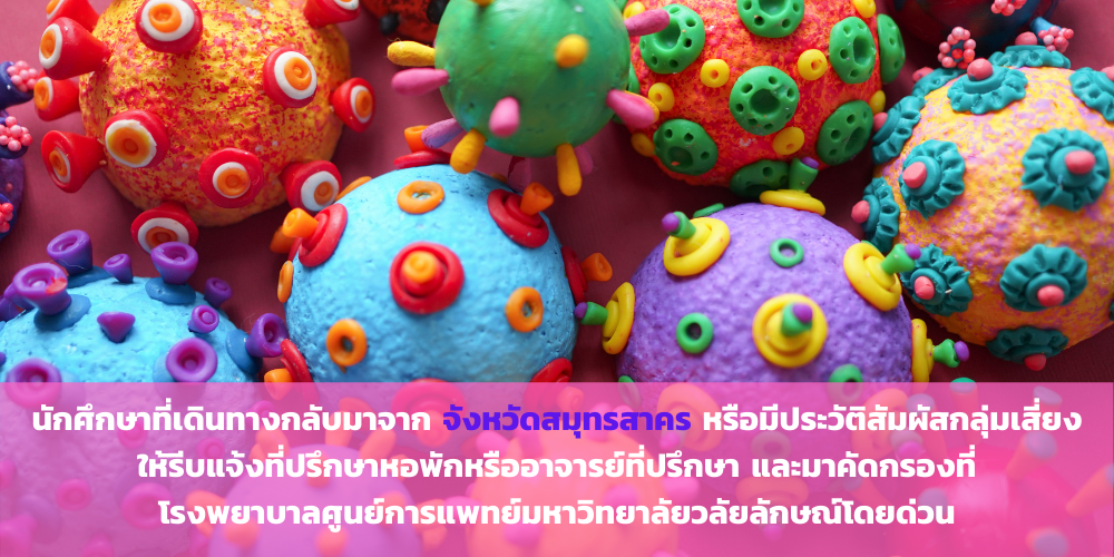 และสืบเนื่องจากกรณีมีการตรวจพบการติดเชื้อที่จังหวัดสมุทรสาครและบางจังหวัดในภาคกลาง ขอให้นักศึกษาทุกคนปฏิบัติตามมาตรการป้องกันโรคโควิด-19 อย่างเคร่งครัด