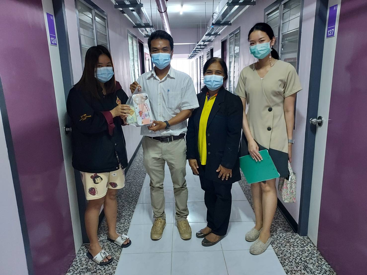 ในการนี้ได้มอบ ของเยี่ยมให้กับนักศึกษา จำนวน 10 คน พร้อมซักถามความเป็นอยู่รวมทั้งการเตรียมตัวในการสอบปลายภาค 2/2563 ของนักศึกษาที่กำลังจะมาถึงและอำนวยสะดวกในการจัดเตรียมสถานที่สำหรับการสอบปลายภาคให้กับนักศึกษา ณ สถานที่แห่งนี้อีกด้วย