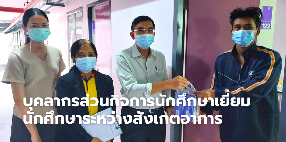 เมื่อวันที่ 12 มกราคม 2564 นายปิยวัชน์ คงอินทร์ หัวหน้าส่วนกิจการนักศึกษา มหาวิทยาลัยวลัยลักษณ์ พร้อมด้วยเจ้าหน้าที่ส่วนกิจการนักศึกษา ได้ไปเยี่ยมนักศึกษา ณ อาคารที่พักบุคลากร (R1) ของโรงพยาบาลศูนย์การแพทย์มหาวิทยาลัยวลัยลักษณ์ ซึ่งเป็นสถานที่ควบคุมและสังเกตการเริ่มป่วย (State Quarantine) ของโรคCovid – 19 ที่มหาวิทยาลัยจัดเตรียมไว้ให้สำหรับนักศึกษาและบุคลากร ที่เข้าข่ายมีความเสี่ยงและเดินทางมาจากพื้นที่เสี่ยงสูงตามประกาศของ ศูนย์บริหารสถานการณ์แพร่ระบาดของโรคติดเชื้อไวรัสโคโรนา 2019 (ศบค.) เพื่อเข้ากักตัวและสังเกตอาการเป็นเวลา 14 วัน