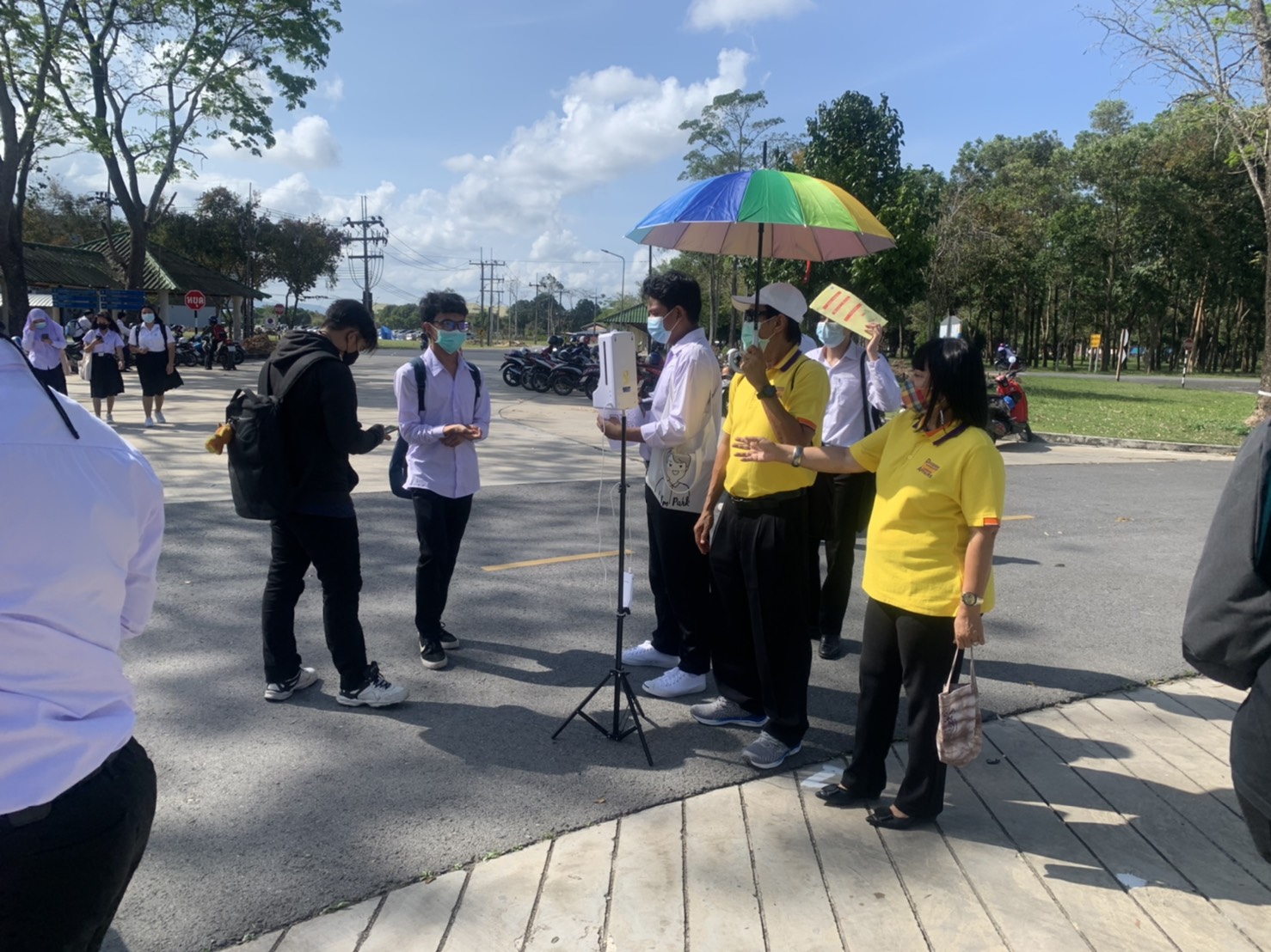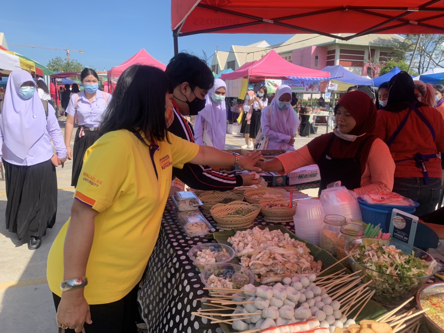 วันที่ 8 กุมภาพันธ์ 2564 งานส่งเสริมกิจกรรมนักศึกษา ส่วนกิจการนักศึกษา มหาวิทยาลัยวลัยลักษณ์ นำโดย คุณกอบสุข อรชร หัวหน้างานส่งเสริมกิจกรรมนักศึกษา และนักศึกษาจิตอาสาจากองค์การบริหาร องค์การนักศึกษา ลงพื้นที่ตลาดจันทร์ประดู่เพื่อกำกับดูแลผู้ค้าในตลาดจันทร์ประดู่ให้เป็นไปตามประกาศจังหวัดนครศรีธรรมราช ข้อ 6 เรื่อง ตลาดถนนคนเดินหรือตลาดเฉพาะกิจในที่สาธารณะ ตลาดนัด โดยมีมาตรการคัดกรอง วัดอุณหภูมิ และติดสติ๊กเกอร์จุดคัดกรอง ผู้ประกอบการร้านค้าทุกร้าน และมีการวัดอุณหภูมิ ลงทะเบียน บริการแอลกอฮอร์เจล แก่นักศึกษาและบุคคลทั่วไปทุกท่าน เพื่อให้เกิดความปลอดภัยอย่างสูงสุด