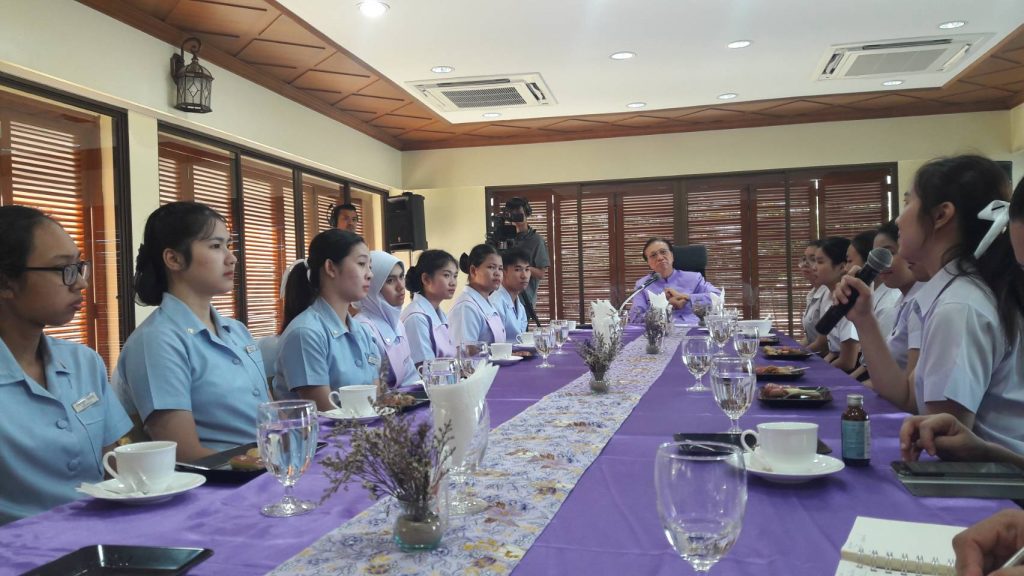 วันที่ 25 เมษายน 2562 ศาสตราจารย์ ดร.สมบัติ ธำรงธัญวงศ์ อธิการบดีมหาวิทยาลัยวลัยลักษณ์ และคณะผู้บริหารของมหาวิทยาลัยต้อนรับตัวแทนนักศึกษาที่ร่วมรับประทานอาหารเช้าและพูดคุยกับตัวแทนนักศึกษาสำนักวิชาพยาบาลศาสตร์ เพื่อรับฟังความคิดเห็นการพัฒนามหาวิทยาลัยตามโครงการ Smart Student ณ เรือนรับรองริมน้ำ