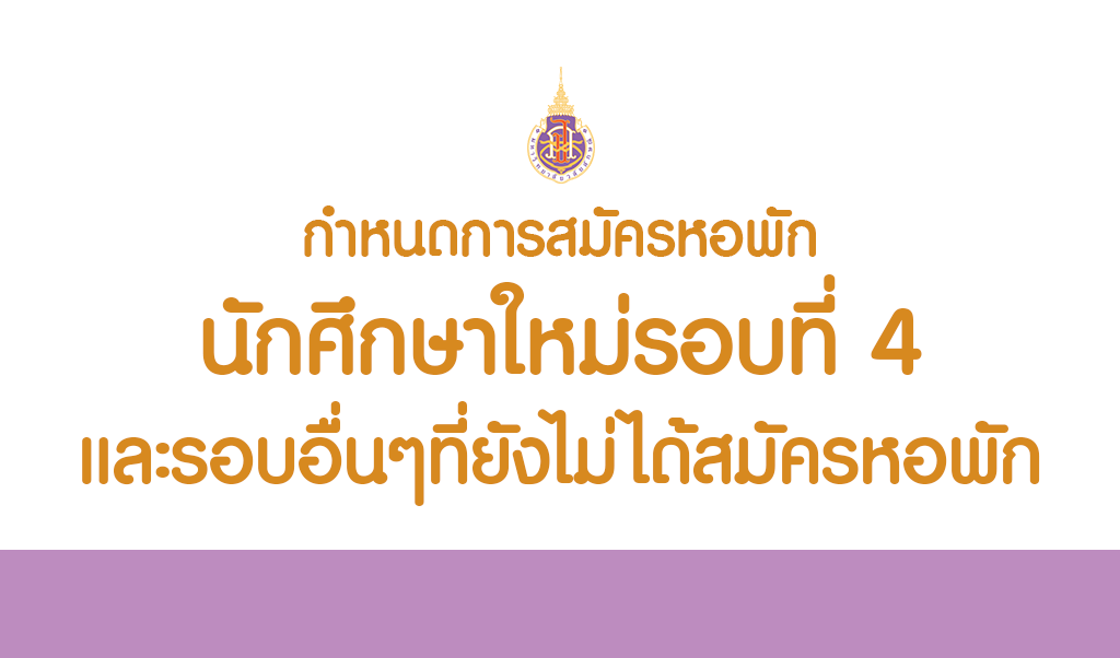 การสมัครหอพักสำหรับนักศึกษาใหม่ รอบ 4 และนักศึกษารอบอื่นๆที่ยังไม่สมัครหอพักของมหาวิทยาลัย ให้ดำเนินการดังนี้