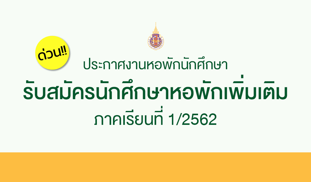 งานหอพักนักศึกษา รับสมัครนักศึกษาอยู่หอพักเพิ่มเติมภาคเรียนที่ 1/2562