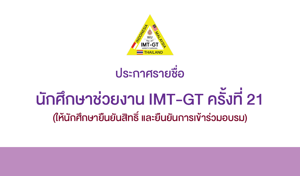 ประกาศรายชื่อนักศึกษาช่วยงาน IMT-GT ครั้งที่ 21