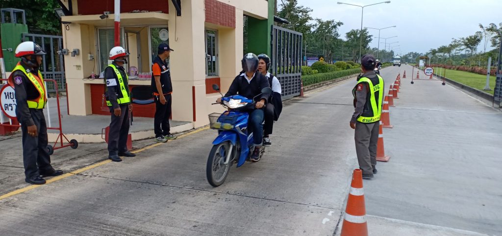 เมื่อวันที่ 14 พ.ย. 62 ส่วนกิจการนักศึกษา นำโดย ว่าที่ รอ.ศุภชัย ปลักปลา นายสุริยันต์ ถึงแสง ร่วมกับ งานรักษาความปลอดภัย กวดขันวินัยจราจร จุดตรวจวลัยคม ถนนทางเข้ามหาวิทยาลัยวลัยลักษณ์ ตั้งแต่เวลา 14.00 -16.00 น. พบนักศึกษาไม่สวมหมวกนิรภัย 25 คน ซึ่งจะได้นำเข้าสู่กระบวนการอบรมวินัยจราจรต่อไป