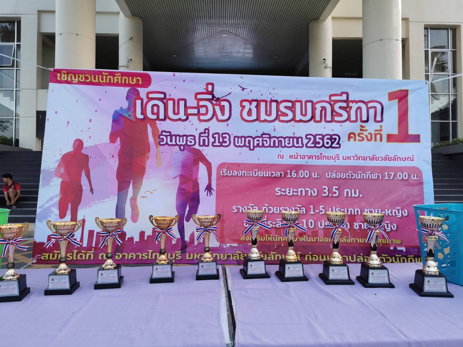 โดย อาจารย์นรากร สุวรรณโชติ ผู้ช่วยอธิการบดีฝ่ายส่งเสริมกีฬาและสุขภาพ กล่าวเปิดการแข่งขันและปล่อยตัวนักวิ่ง มีนักศึกษาสนใจเข้าร่วมจำนวน 80 คน โดยชมรมฯ คาดว่าจะจัดกิจกรรมเดิน-วิ่ง ชมรมกรีฑาฯ ทุกภาคการศึกษา ครั้งถัดไปจะจัดประมาณเดือนกุมภาพันธ์ 2563 ซึ่งจะได้เชิญชวนพนักงานของมหาวิทยาลัยเข้าร่วมกิจกรรมนี้ด้วย