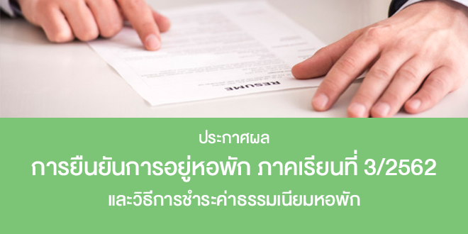 ประกาศผลการยืนยันการอยู่หอพัก ภาคเรียนที่ 3/2562
