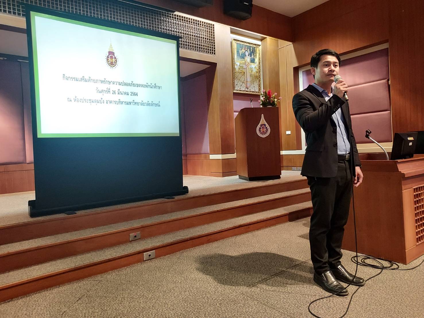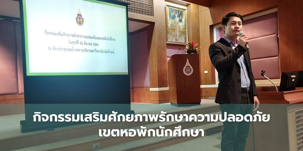 เมื่อวันที่ 26 มีนาคม 2564 รศ.ดร.ศราวุธ ปาลิโภชน์ รองอธิการบดีฝ่ายกิจการนักศึกษา เป็นประธานประชุมเจ้าหน้าที่รักษาความปลอดภัยเขตหอพักนักศึกษา เพื่อมอบนโยบาย การดูแลความปลอดภัยนักศึกษา การทำงานตามระบบและคู่มือปฏิบัติงาน มีจิตใจบริการ ตลอดจนแลกเปลี่ยนความคิดเห็น ปรับปรุงงานให้มีประสิทธิภาพมากขึ้น โดยมีหัวหน้างานบริการกลาง หัวหน้าส่วนกิจการนักศึกษา และเจ้าหน้าที่ส่วนกิจการนักศึกษาที่กำกับดูแลด้านความปลอดภัยบริเวณหอพักนักศึกษาเข้าร่วมด้วย ทั้งนี้ จะมีการติดตาม ประเมินผลการปฏิบัติงานอย่างต่อเนื่อง และจะใช้ระบบสแกน QR code จุดตรวจลาดตระเวนต่างๆในบริเวณหอพัก รวมทั้งมอบรางวัล รปภ.ดีเด่น เพื่อสร้างแรงจูงใจด้วย