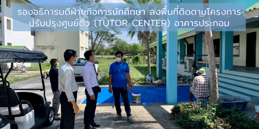 เมื่อวันที่ 16 เมษายน 2564 รองศาสตราจารย์ ดร.ศราวุธ ปาลิโภชน์ รองอธิการบดีฝ่ายกิจการนักศึกษา และนายปิยวัชน์ คงอินทร์ หัวหน้าส่วนกิจการนักศึกษา ลงพื้นที่ติดตามโครงการปรับปรุงศูนย์ติว (Tutor Center) อาคารประกอบ บริเวณหอพักลักษณานิเวศ 14 ซึ่งอยู่ระหว่างการเก็บงานและคืนสภาพพื้นที่ เพื่อให้กรรมการตรวจรับดำเนินการตรวจสอบงานปรับปรุงอาคารให้ตรงตามกำหนดต่อไป