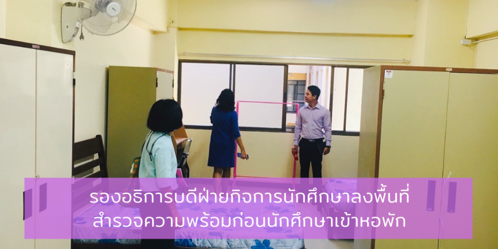 แต่เนื่องด้วยงบประมาณการปรับปรุงห้องพัก ต้องนำหารือร่วมกับผู้อำนวยการศูนย์บริหารทรัพย์สินอีกครั้ง เพื่อให้ไปในทิศทางเดียวกันและมีความสมเหตุสมผล คณะผู้บริหารจึงลงพื้นที่เก็บข้อมูล ณ หอพักด้วยตนเอง ทั้งนี้ได้แวะชมห้องพักเสริมที่เปิดเพิ่มเติมสำหรับนักศึกษาชั้นปีที่ 1 ซึ่งจะเปิดให้เข้าพักเมื่อมีการเปิดการเรียนการสอนตามปกติ