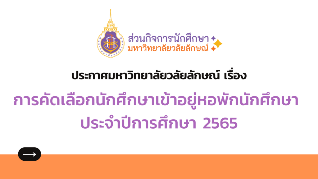 คลิกอ่านประกาศ >> ประกาศมหาวิทยาลัยวลัยลักษณ์ เรื่อง การคัดเลือกนักศึกษาปัจจุบัน เข้าอยู่หอพักปีการศึกษา 2565