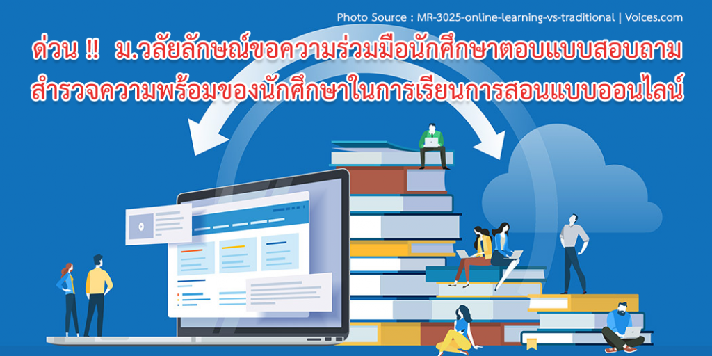 ศูนย์บริการการศึกษา มหาวิทยาลัยวลัยลักษณ์ ขอสำรวจความพร้อมของนักศึกษามหาวิทยาลัยวลัยลักษณ์ในการเรียนการสอนแบบออนไลน์ ขอให้นักศึกษาตอบแบบสำรวจภายในวันที่ 16 มีนาคม 2563 เพื่อใช้วางแผนในการให้บริการจัดการเรียนการสอนแบบออนไลน์หากมีความจำเป็นต่อไป