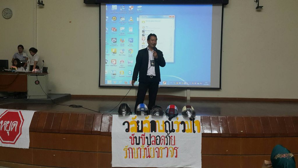 นักศึกษาสำนักวิชาการจัดการ จัดกิจกรรมรณรงค์ขับขี่ปลอดภัย สำหรับนักศึกษาเพื่อสร้างจิตสำนึกความปลอดภัย ร่วมลดความเสี่ยงการเกิดอุบัติเหตุ โดยมีคุณสุริยนัต์ ถึงแสง เจ้าหน้าที่ส่วนกิจการนักศึกษา เป็นวิทยากร ให้ควารมรู้