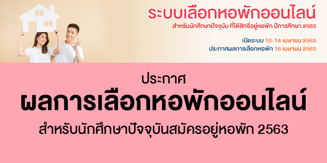 คลิก >>ประกาศผลการเลือกหอพัก หอพักลักษณานิเวศ 14