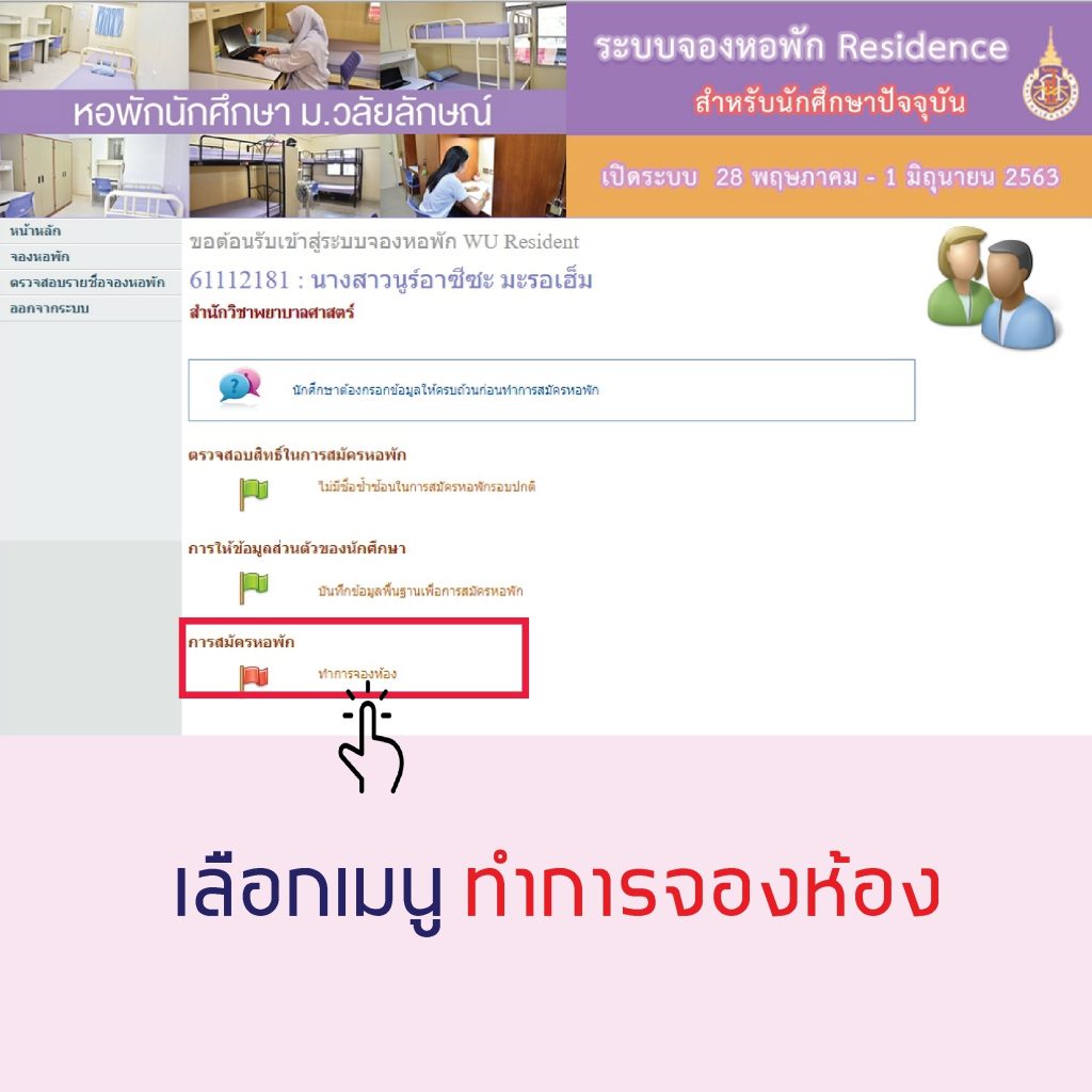 4.เลือกเมนู ทำการจองห้อง และดำเนินการต่อในขั้นตอนที่ 6