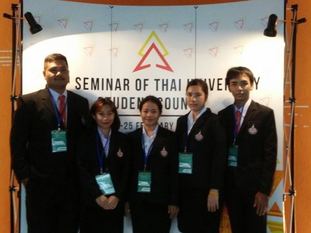 ส่วนกิจการนักศึกษา ส่งบุคลากรและนักศึกษา เข้าร่วมสัมมนาสภานิสิตนักศึกษา ระดับอุดมศึกษาทั่วประเทศ ครั้งที่ 24 (24th Seminar of Thai University Student Counsils) ระหว่างวันที่ 23-25 กุมภาพันธ์ 2561 ณ มหาวิทยาลัยธรรมศาสตร์ ศูนย์รังสิต โดยมีรายชื่อบุคลากรและนักศึกษา ดังนี้