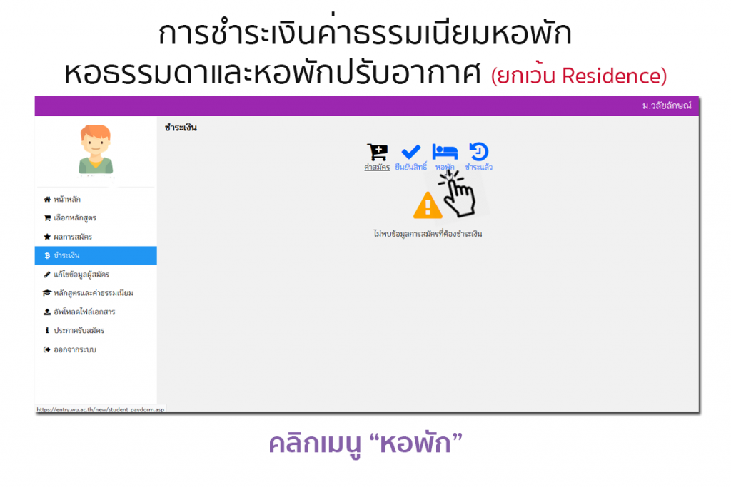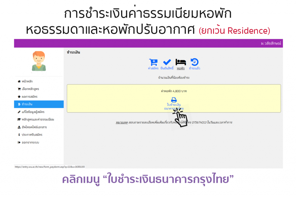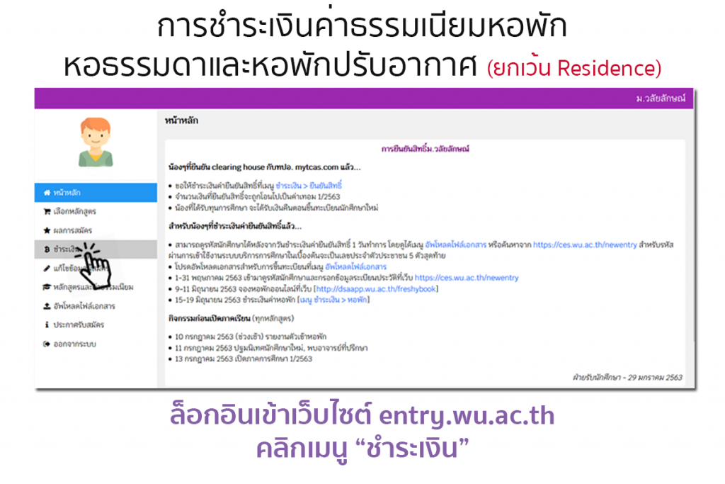 [highlight color=”orange”]**จะไม่มีรายการค่าหอพักในเว็บไซต์ entry.wu.ac.th[/highlight]