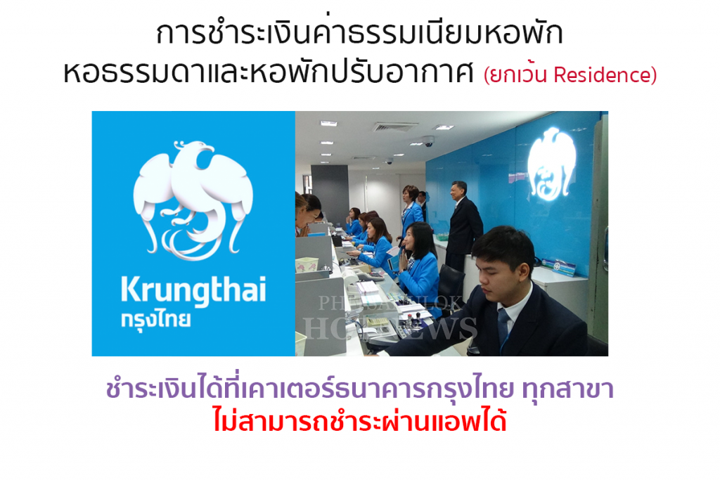 1.นักศึกษาที่สมัครหอพักลักษณานิเวศ 1,2,3,4,5,7,10,11,13,14,16,17,18 ชำระระหว่างวันที่ 16-21 มิถุนายน 2563 ณ เคาเตอร์ธนาคารกรุงไทย ทุกสาขา