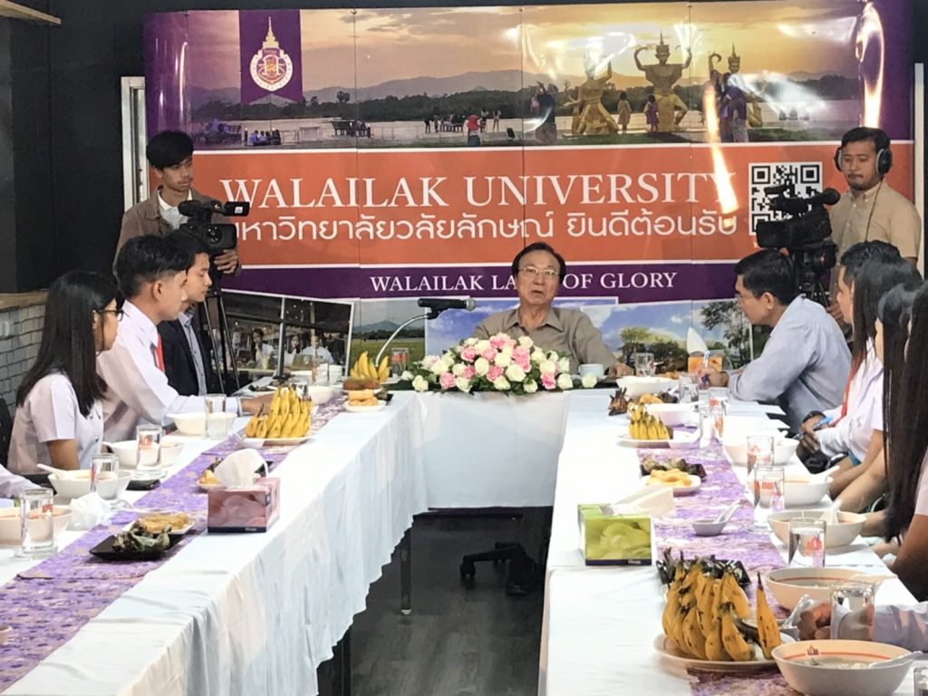 วันที่ 9 มกราคม 2562 ศาสตราจารย์ ดร.สมบัติ ธำรงธัญวงศ์ อธิการบดีมหาวิทยาลัยวลัยลักษณ์ พบปะผู้นำนักศึกษาองค์การบริหาร องค์การนักศึกษา สภานักศึกษา สโมสรสำนักวิชา เพื่อสอบถามเกี่ยวกับการดำเนินงานกิจกรรมนักศึกษาในทุกระดับ ตลอดจนปัญหาอุปสรรคที่มหาวิทยาลัยจะสามารถช่วยเหลือนักศึกษาได้ทั้งการทำกิจกรรมและการใช้ชีวิต และรับประทานอาหารเช้าร่วมกันกับผู้นำนักศึกษาโดยมีบรรยากาศเป็นกันเอง ณ ห้อง Co Working Space อาคารปฏิบัติการเทคโนโลยีและพัฒนานวัตกรรม