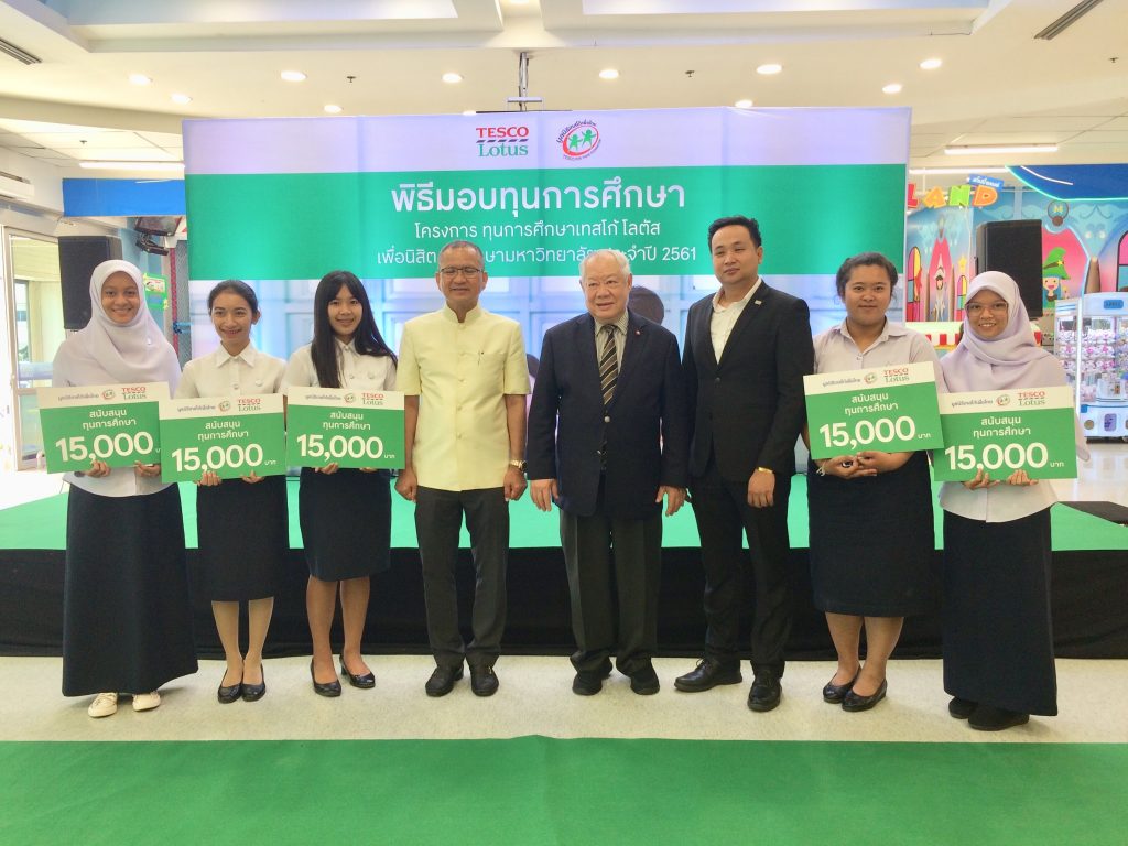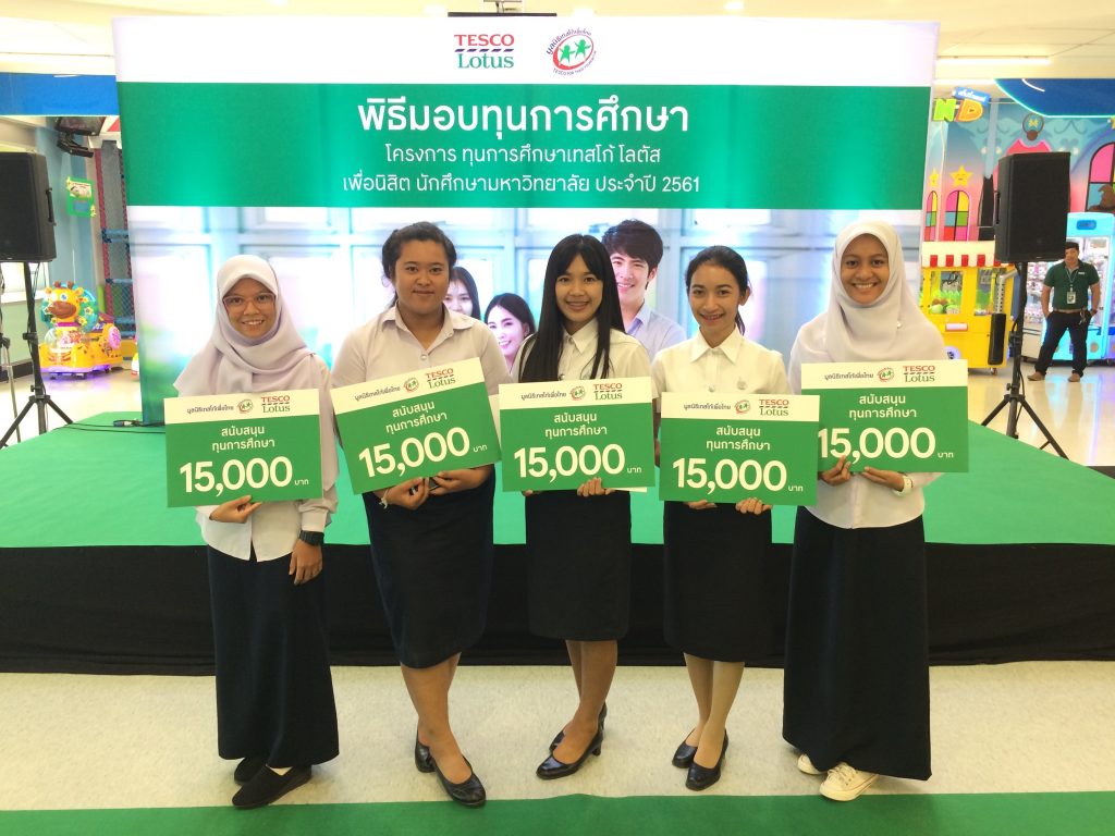 โดยนักศึกษา (เข้าร่วมพิธีรับทุนได้ 5 คน) และนางสาวประภา มายิ เจ้าหน้าที่ด้านทุนการศึกษา งานบริการและสวัสดิการ ส่วนกิจการนักศึกษา เข้าร่วมพิธีมอบทุนเทสโก้โลตัสเพื่อนิสิต นักศึกษามหาวิทยาลัย ประจำปีการศึกษา 2561 โดยมูลนิธิ เทสโก้ เพื่อไทย ในวันที่ 15 กุมภาพันธ์ 2562 ณ ห้างสรรพสินค้าเทสโก้โลตัส หาดใหญ่ สาขา 2